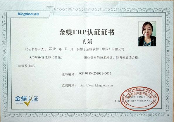 金蝶ERP认证证书K3财务管理师-冉娟(高级)