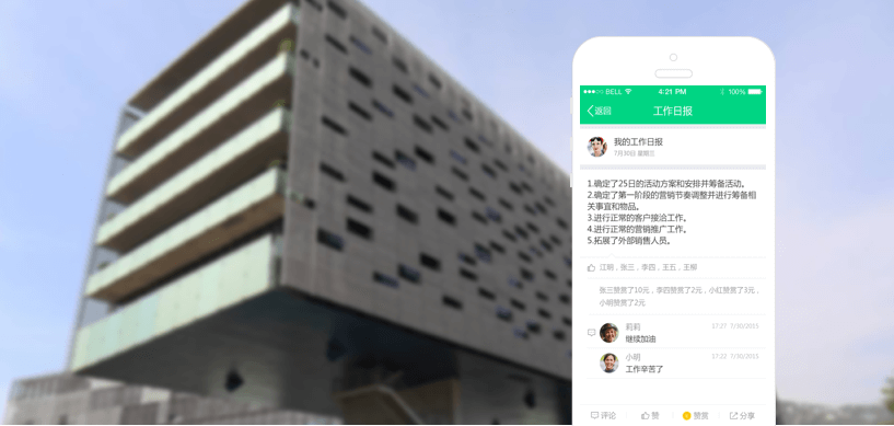 负责人快速掌握团队工作汇报;评论;点赞将鼓励可视化。