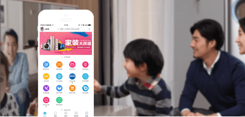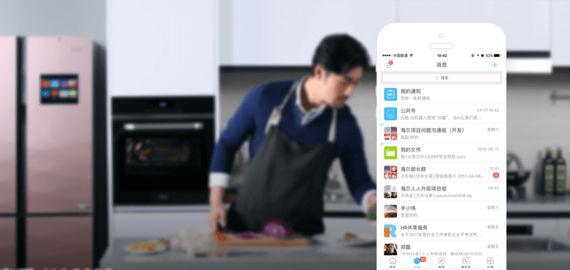 功能:消息沟通、海尔微逋、通讯录、公众号……实现移动、PC、web三端同步,扁平沟通;丰富移动轻应用,核心业务系统对接