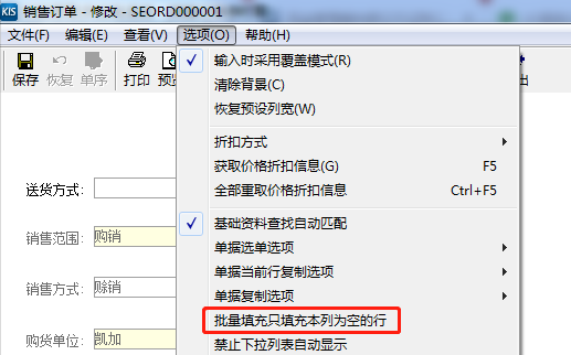 批量填充税率方法:在单据菜单栏上的“选项”菜单中,不勾选参数“批量填充只填充本列为空的行”,修改第一条分录为13%后,按F6进行批量填充,即可。参数位置如下图。